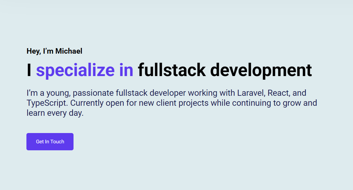 I’m a young, passionate fullstack developer working with Laravel, React, and TypeScript. Currently open for new client projects while continuing to grow and learn every day.