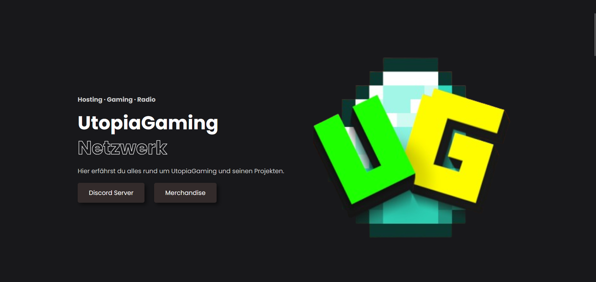 A website for the UtopiaGaming network, which includes hosting services and a Minecraft radio platform.